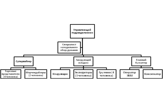 Управляющий подразделением осуществляет центральное руководство филиала, заботится о выполнении плана реализации продукции компании, своевременном финансировании и выплатах, подготовке кадров и повышения их квалификации, а также неукоснительном выполнении планов, поставленных им перед подчинёнными.