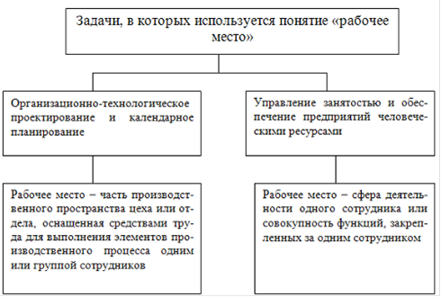 В организационно-техническом и эргономическом аспектах рабочее место - это часть производственного пространства цеха или отдела, оснащенная средствами труда (оборудованием, инструментами, приспособлениями) для выполнения относительно обособленной части производственного процесса одним или группой сотрудников. Такое определение предполагает рационализацию выбора и размещения технических средств, обеспечивающих безопасную и эффективную деятельность людей в соответствующей части подразделения предприятия [40. C. 116].