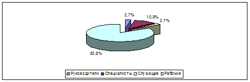 В 2009г. Среднесписочная численность предприятия составила 37 человек. Из них больший удельный вес составляют рабочие 83,8% (31 человек). На долю руководителя, специалистов и служащего выпадает 16,2% от общей численности работников, это вполне оправдано, так как при этом достигается повышение производительности труда всего персонала за счет более высокой организации труда и управления, к тому же фактическая численность управленческого персонала не превышает допустимой нормы.