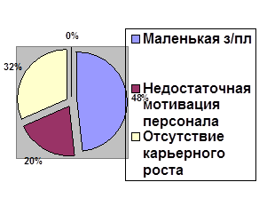 Исходя из рисунка 2.5, видно, что основная причина ухода из гостиницы «Арена» это маленькая зарплата (48%), 32% - недостаточная мотивация персонала, 20% - отсутствие карьерного роста.