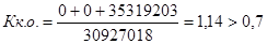 7. Коэффициент обеспеченности собственными средствами: