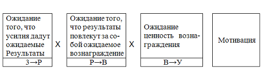 В соответствии с приведенным рисунком мотивации в теории ожидания строятся на количественных взаимосвязях между затратами труда и степенью удовлетворенности вознаграждением за труд.