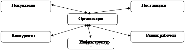 Изучение непосредственного окружения организации направлено на анализ состояния тех составляющих внешней среды, с которыми организация находится в непосредственном взаимодействии. При этом важно подчеркнуть, что организация может оказывать существенное влияние на характер и содержание этого взаимодействия, тем самым она может активно участвовать в формировании дополнительных возможностей и в предотвращении появления угроз ее дальнейшему существованию. К числу элементов микроокружения относят: поставщиков, потребителей, конкурентов, рынок рабочей силы, инфраструктура.