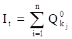 Если согласно методике Феликса-Риггса текущее значение j-го критерия производства можно отобразить его оценкой Qkj, то величину эффективности управления (прирост эффективности от совершенствования функций управления) можно определить как разницу между суммарными значениями оценок, составляющими индекс It (на момент времени после внедрения мероприятий по совершенствованию управления) и индексом I0 (на первоначальный момент анализа):