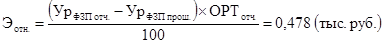 ФЗП в отчетном году вырос на 32,4 тыс. руб. Прирост составил 5,92%. Уровень ФЗП в отчетном году также, хотя и не значительно, но вырос (0,32%). Это является отрицательным моментом для предприятия, так как наблюдается рост ФЗП на фоне снижения оборота розничной торговли предприятия. В этом случае на предприятии будет иметь место перерасхода средств на оплату труда в сумме около пятисот рублей:
