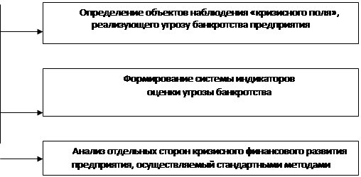 1. Определение объектов наблюдения «кризисного поля», реализующего угрозу банкротства предприятия. Опыт показывает, что в современных экономических условиях практически все аспекты финансовой деятельности предприятия могут генерировать угрозу его банкротства.