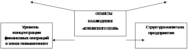 Рис. 1.2 Основные объекты наблюдения «кризисного поля» предприятия, включаемых в систему мониторинга его текущей финансовой деятельности