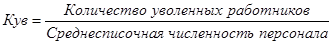 2) коэффициент по увольнению рабочих (Кув):