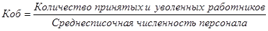 4) коэффициент общего оборота рабочей силы (Коб):