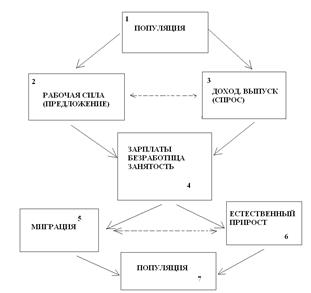 Сложность моделирования региональных трудовых рынков должна быть очевидной исходя из предыдущей главы, даже, не принимая во внимание занятия, навыки и институциональные факторы. Различные компоненты системы рынка труда показаны на рисунке 3. Хотя существование экономико-демографических взаимосвязей может казаться очевидным, они составляют значительное упрощение функционирования рынков труда, демографы и экономисты очень редко моделируют население и экономику так, как будто они связаны.
