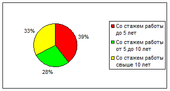 В структуре кадров преобладают сотрудники со стажем работы до 5 лет (39%).