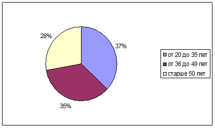 Состав персонала по возрасту относительно равномерен - 28% сотрудники в возрасте старше 50 лет, 35% - в возрасте от 36 до 49 лет, 37% - в возрасте от 20 до 35 лет.