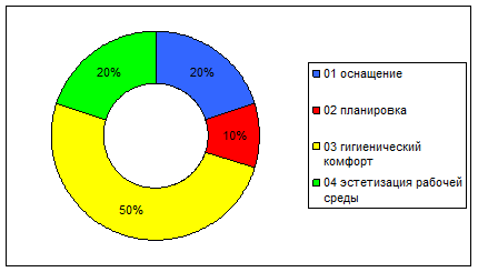Итак, по мнению респондентов, наиболее удачным в их рабочем месте является гигиенический комфорт, 20% отметили хорошее оснащение и эстетизацию рабочего места, 10% планировку.