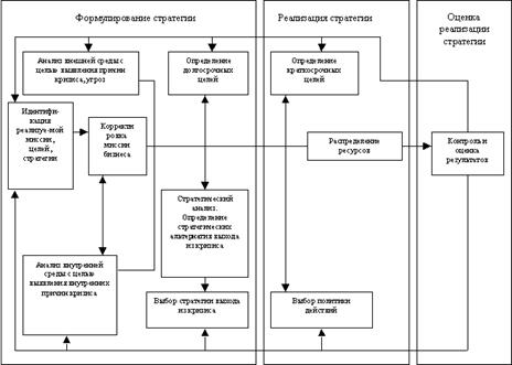 В целом предлагаемый процесс антикризисного управления будет представлять собой замкнутый цикл: от разработки стратегии к составлению оперативных планов до реализации и контроля, и обратно – от результатов выполнения к пересмотру миссии. Это позволит адаптировать систему управления к кризису и одновременно решать возникающие в связи с ним проблемы.